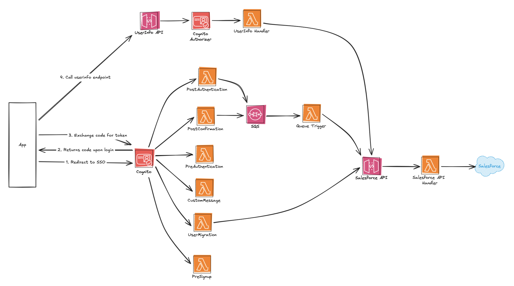 When a user attempts to sign in and does not yet exist in the new User Pool, Cognito automatically invokes the migration trigger. At that point, our system retrieves the required user data from Salesforce, which remains the source of truth, and creates the user in the new pool on the fly.